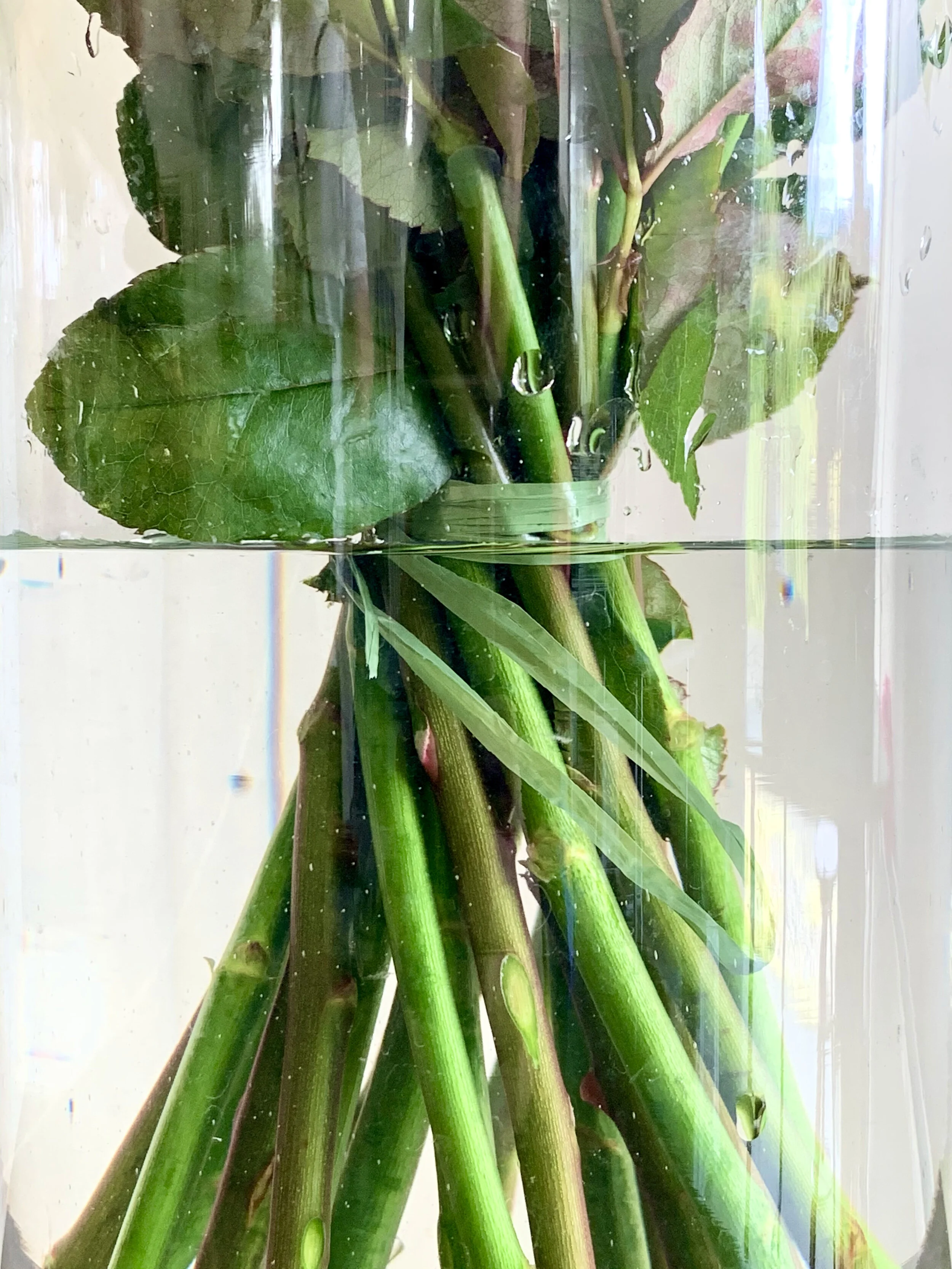 Hreinsa vel stilkana áður enn sett er í vatn.